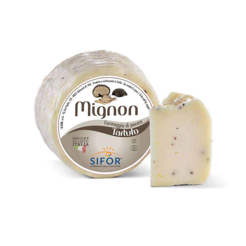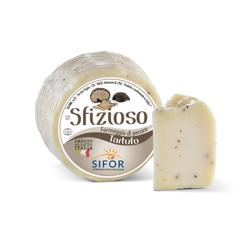 Ingredienti: LATTE di pecora pastorizzato, Preparato di Tartufo Estivo [(Tuber aestivum Vitt., acqua, sale, aroma) 1%], sale, caglio, fermenti lattici.